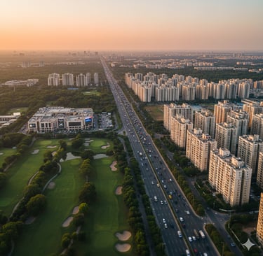 Green Spaces: The emphasis on an extensive green belt and the presence of a golf course provides a more serene and less polluted environment.